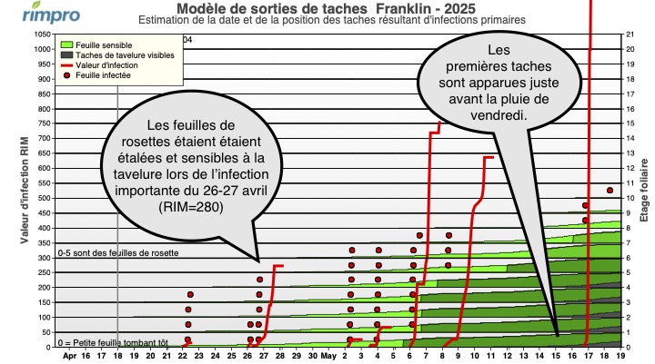 Apparition des taches issues des infections primaires selon RIMpro (ce modèle n’est pas en ligne).
