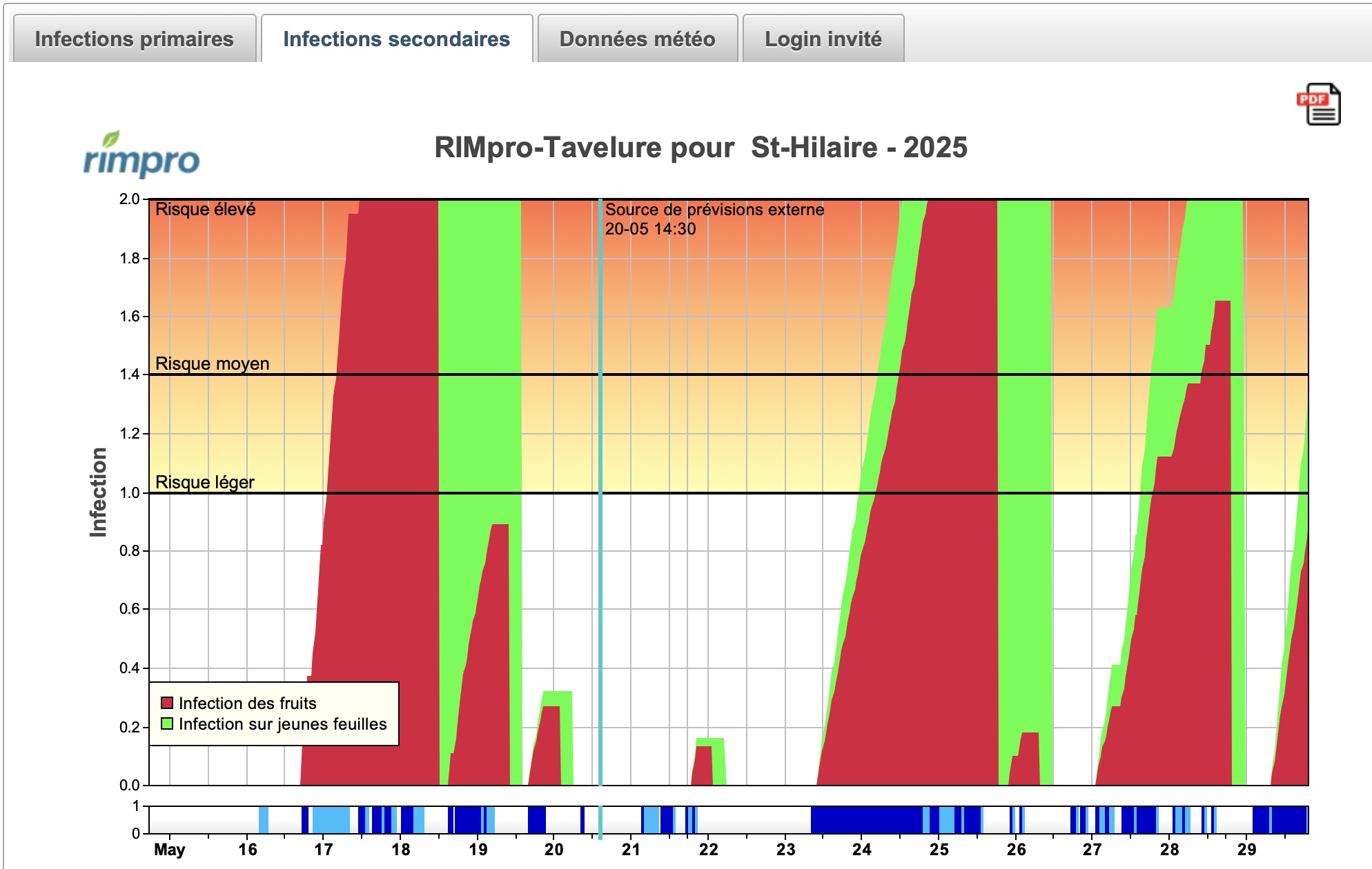 L’onglet “infections secondaires” de RIMpro permet d’accéder au calcul d’infection secondaire (selon Mills et Schwabe)