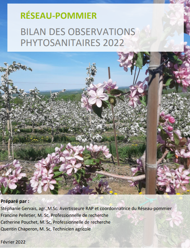 Ce bilan regroupe les données collectées dans les vergers pilotes et postes d’observation du Réseau-pommier. Il présente un portrait de la dernière saison, les dates prédites et observées des différents stades phénologiques du pommier (cv McIntosh), les évaluations de dommages à la récolte, le sommaire des traitements antiparasitaires effectués durant la saison dans les vergers pilotes ainsi que les sommaires saisonniers des captures par site.