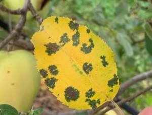 Taches de Diplocarpon (Marssonina) sur une feuille