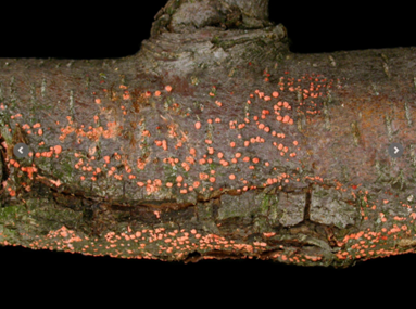 Fructifications fongiques du dépérissement nectrien (source : Laboratoire d’expertise et de diagnostic en phytoprotection, MAPAQ).